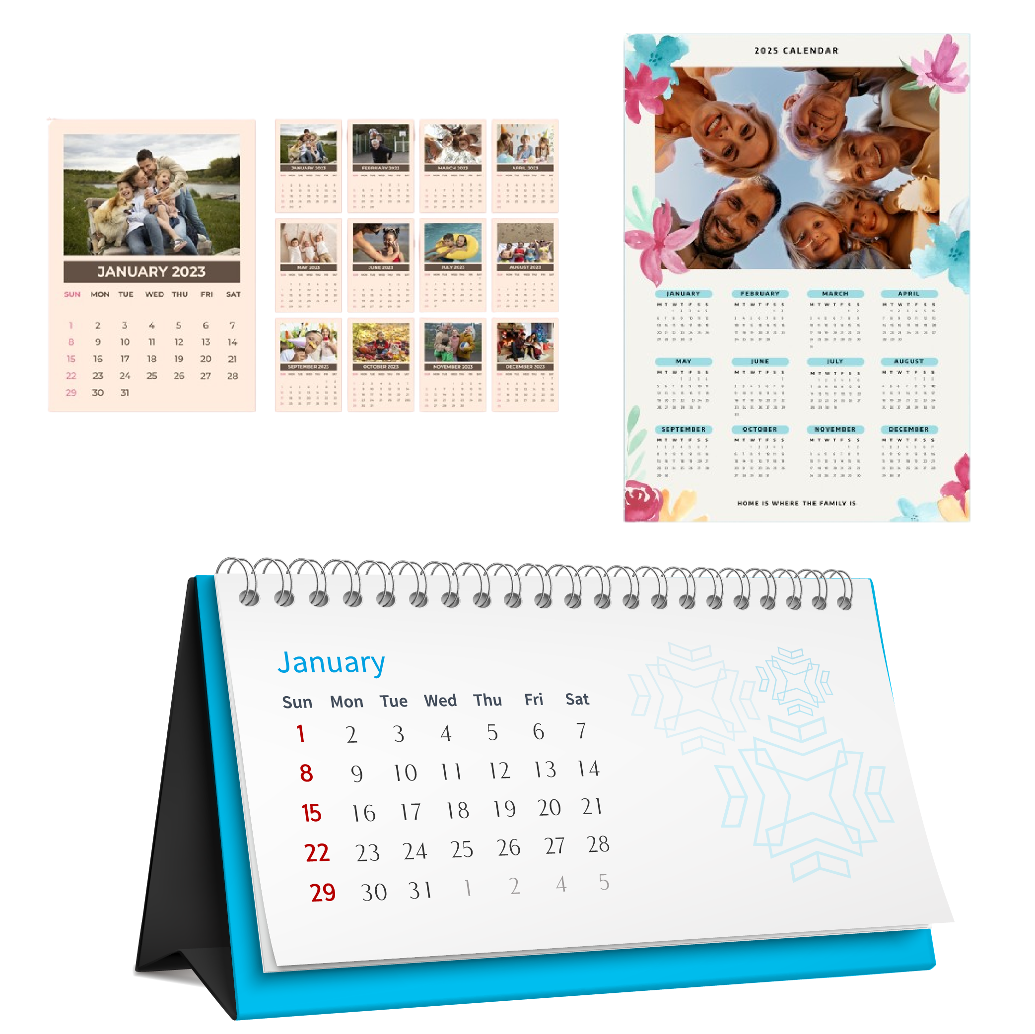 Ofrecemos calendarios de sobremesa, mes a mes y de faldilla con diseños personalizados para tu negocio. Son prácticos, visibles y perfectos para regalar a clientes o usar en oficina. Producción profesional y entrega local en Valladolid